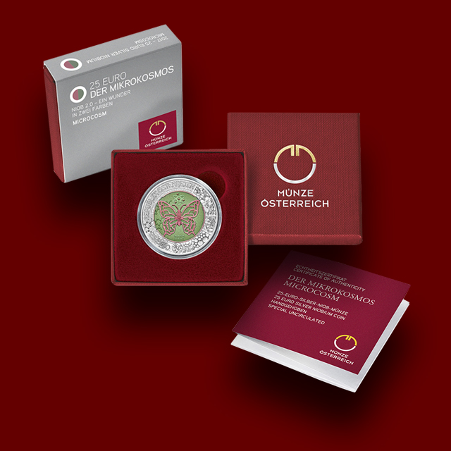 Najnovejši dvobarvni srebrnik iz serije bimetalnih kovancev odkriva svet v malem, mikrokozmos. Že več kot desetletje in pol kovanci, ki združujejo zmes srebra in niobija, tako imenovani bimetalni kovanci, raziskujejo zanimive teme, zato upodobitev znanstenih odkritjj mikrokozmosa ni izjema.