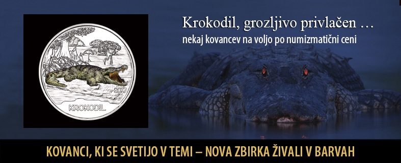 Krokodili so na svetu že od prazgodovine in časa dinozavrov. Zagotovo bodo ljubitelji živali navdušeni nad Krokodilom, tretjim v seriji Živali v barvah, privlačnih kovancev, ki se svetijo v temi. V seriji je 12 obtočnih tri evrskih kovancev z motivom živali prečudovite narave.