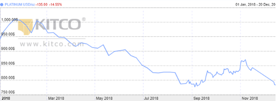 Cena platine od 1. januarja 2018 do 20. decembra 2018