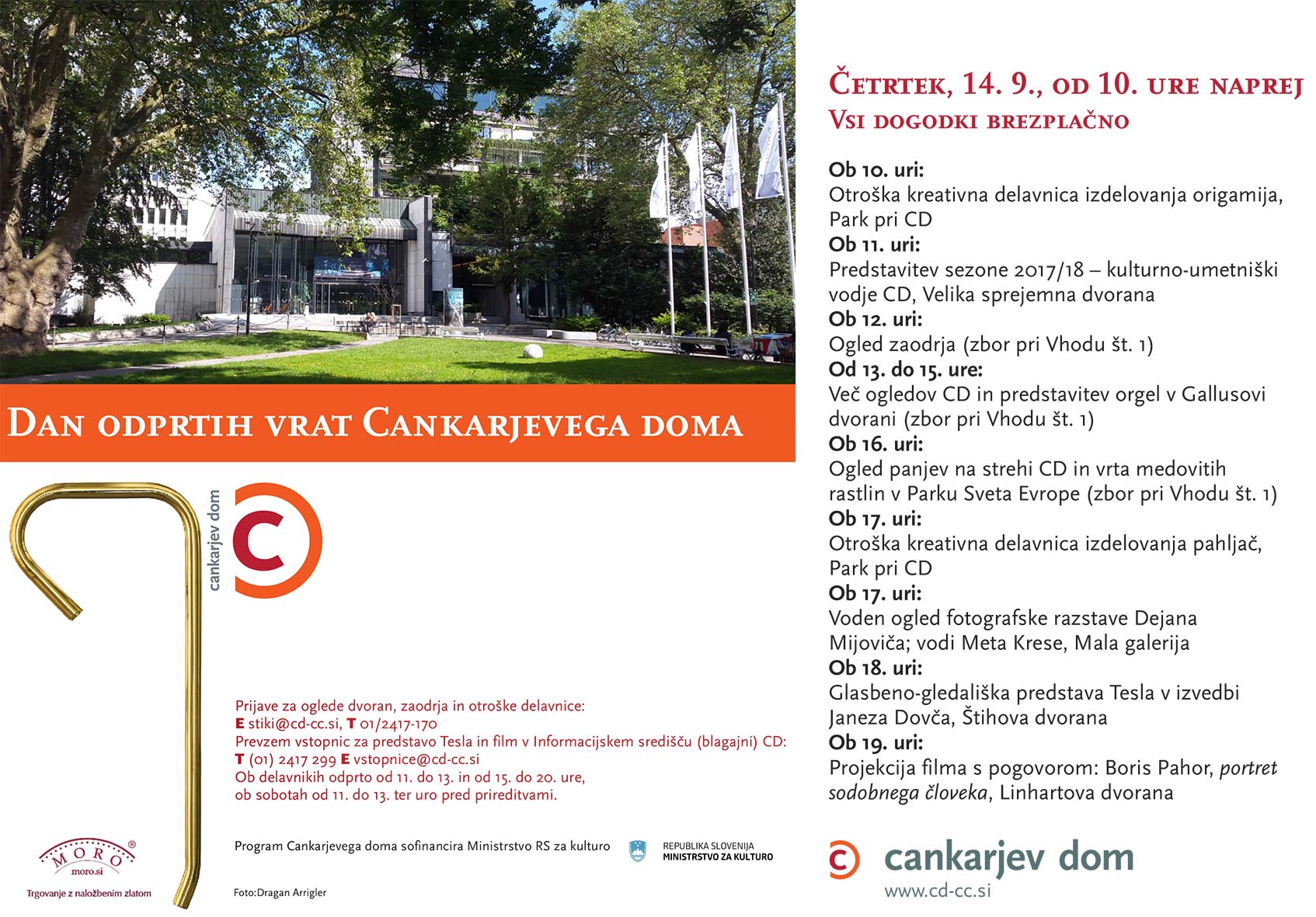 Vljudno vabljeni v četrtek, 14. septembra, od 10. ure naprej na Dan odprtih vrat Cankarjevega doma, ki ga sponzorira družba Moro.