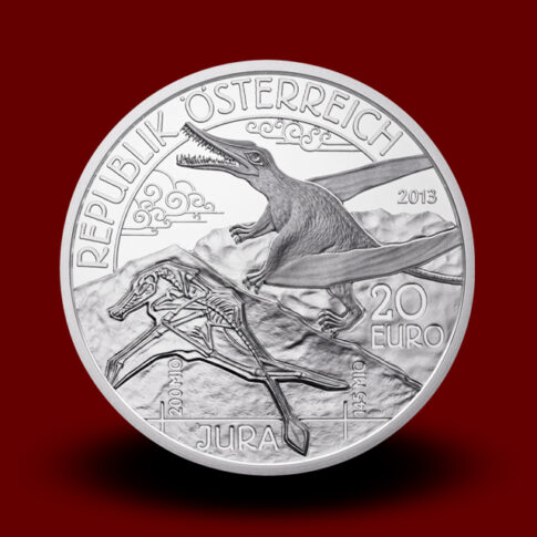Na sprednji strani kovanca je prikazan Rhamphorhynchus (v živi in fosilni obliki, kot okostje) – pterozaver, ki je živel v geološkem obdobju Jura, pred približno 155 milijoni let. Ta leteči plazilec je meril slaba dva metra in tehtal okrog 5 kilogramov. Druga, zadnja stran kovanca prikazuje tipično jursko obvodno pokrajino in par pterozavrov pri lovu na orjaškega kačjega pastirja.