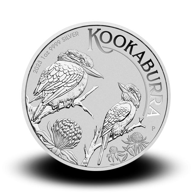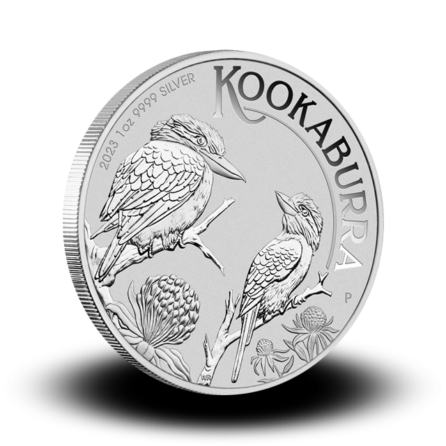 The Australian Perth Mint silver Kookaburras were first introduced in 1990. Each coin has a unique image of the most famous bird in Australia on the obverse. The obverse design changes annually; one reason the silver coins are appealing to both investors and collectors. The reverse bears the image of Queen Elizabeth II which is set in a proof finish.