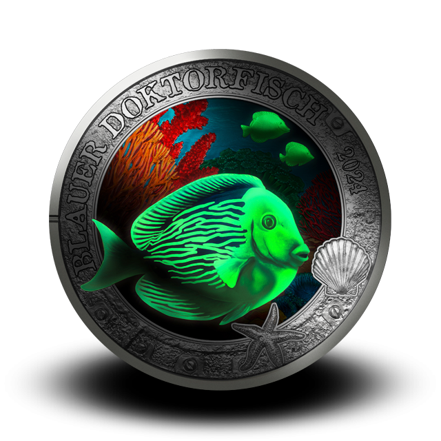 > Austrian collector coins in silver>Austrian Eurocoins>16 g (Cu/Ni) - 3 € Luminous Marine Life Series - Doctor Fish