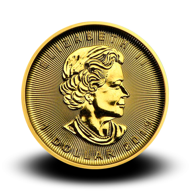In Canada the coin is known as a symbol of freedom, independence and stability. Each gold Maple Leaf coin features the image of Queen Elizabeth the second, along with the denomination and date of issue, on the obverse side and an image of Canada's national symbol, the maple leaf, on the reverse side. The coins minted after 1982 are of the highest purity, 999,9/1000.