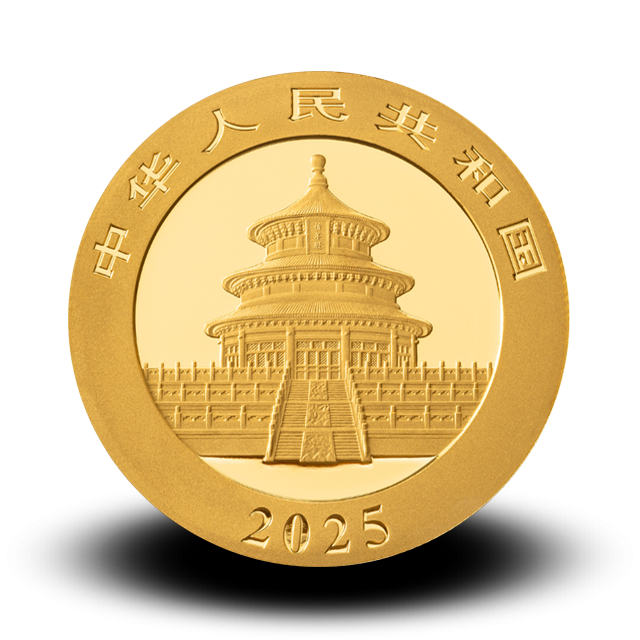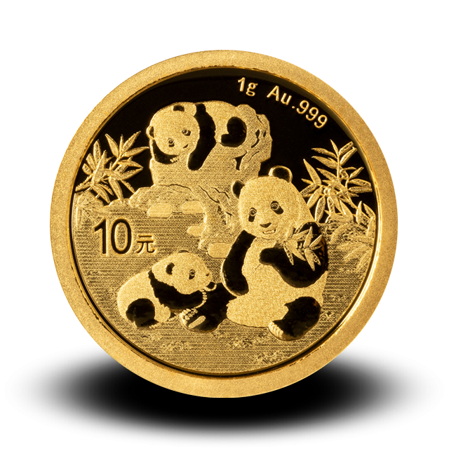 The Chinese Gold Panda is a series of gold bullion coins issued by the People's Republic of China. The coins were introduced in 1982. The gold Panda coins come in different sizes and denominations. The obverse depicts the Temple of Heaven with Chinese characters on top saying "Zhonghua Renmin Gongheguo" meaning People's Republic of China. The reverse depicts different portraits of panda.