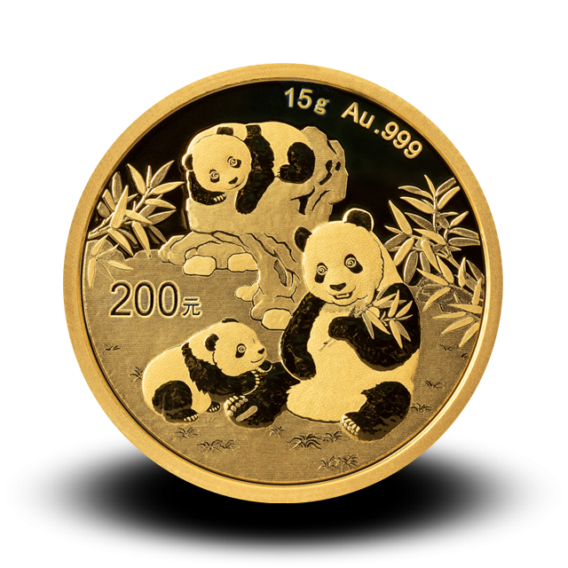 The Chinese Gold Panda is a series of gold bullion coins issued by the People's Republic of China. The coins were introduced in 1982. The gold Panda coins come in different sizes and denominations. The obverse depicts the Temple of Heaven with Chinese characters on top saying "Zhonghua Renmin Gongheguo" meaning People's Republic of China. The reverse depicts different portraits of panda.