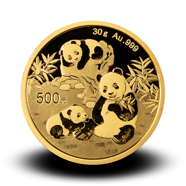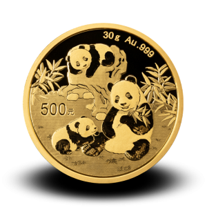 The Chinese Gold Panda is a series of gold bullion coins issued by the People's Republic of China. The coins were introduced in 1982. The gold Panda coins come in different sizes and denominations. The obverse depicts the Temple of Heaven with Chinese characters on top saying "Zhonghua Renmin Gongheguo" meaning People's Republic of China. The reverse depicts different portraits of panda.