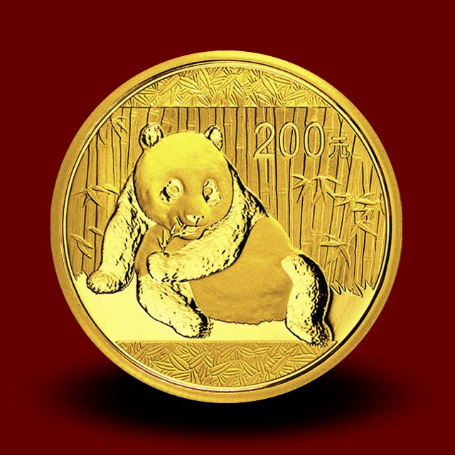 The Chinese Gold Panda is a series of gold bullion coins issued by the People's Republic of China. The coins were introduced in 1982. The gold Panda coins come in different sizes and denominations. The obverse depicts the Temple of Heaven with Chinese characters on top saying "Zhonghua Renmin Gongheguo" meaning People's Republic of China. The reverse depicts different portraits of panda.