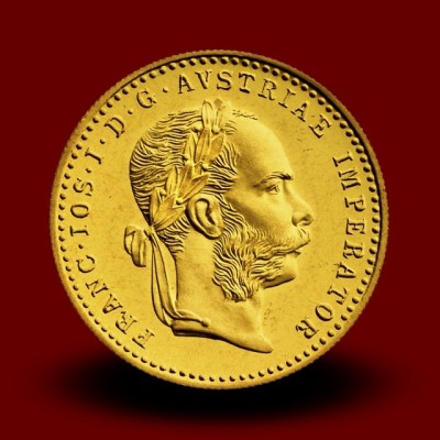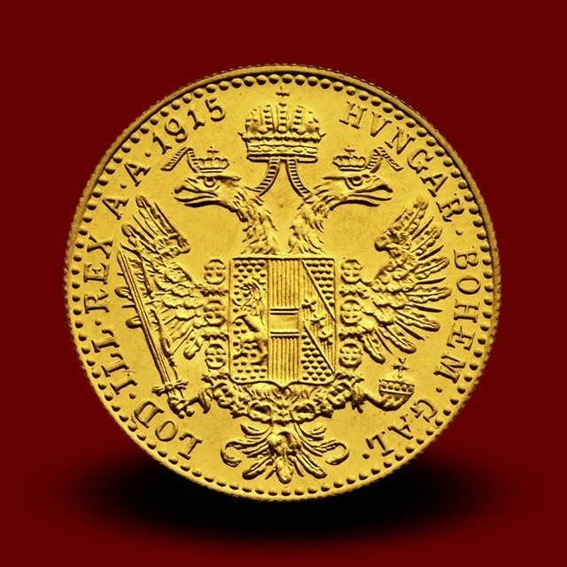 The coins of the past, so called restrikes, are newly minted gold coins, with the same print on the front and back of the coin as it was when the coin was in circulation. They usually differ from the original in the strike year. All Ducat Gold Coins have the original image from year 1872. The strike year on the coin is 1915.