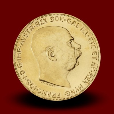 Dating back to the currency reform of 1892, the Crown became the first gold currency in history when 10 and 20 crown coins were issued in place of the Gulden. The stately and much larger 100 crown coin was issued on Emperor Franz Joseph’s diamond jubilee in 1908.