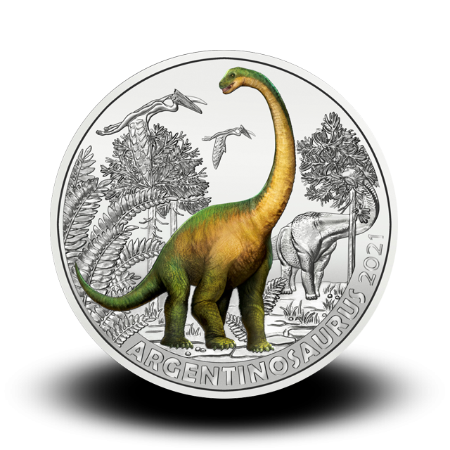 > Prigodne kovanice Austrije u srebru>Eurokovanice Austrije>16 g Argentinosaurus- 3 € kovanica (2021), serija Superzavri