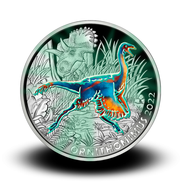 > Prigodne kovanice Austrije u srebru>Eurokovanice Austrije>16 g Ornithomimus velox - 3 € kovanica (2022), serija Superzavri
