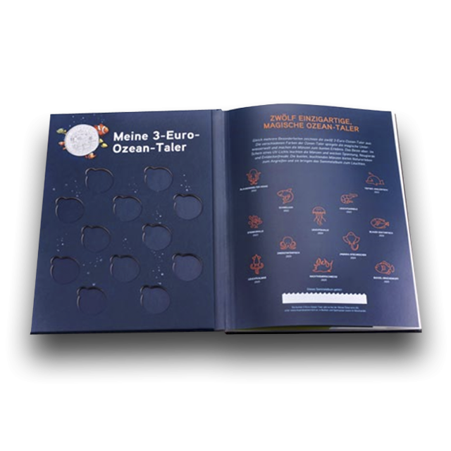 Album za kolekciju 12 kovanica Čarobni podvodni svijet. Samo na njemačkom jeziku.