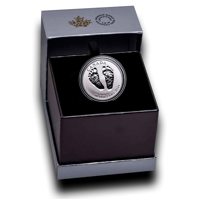 Ovaj ljupki novčić prikazuje bit sretnog vremena s dizajnom dječjih stopala, poput otisaka stopala u pijesku. Predstavljen je u prekrasnoj kutiji i uključuje posebno dizajniranu potvrdu autentičnosti s prostorom za dodavanje vlastite personalizirane poruke.