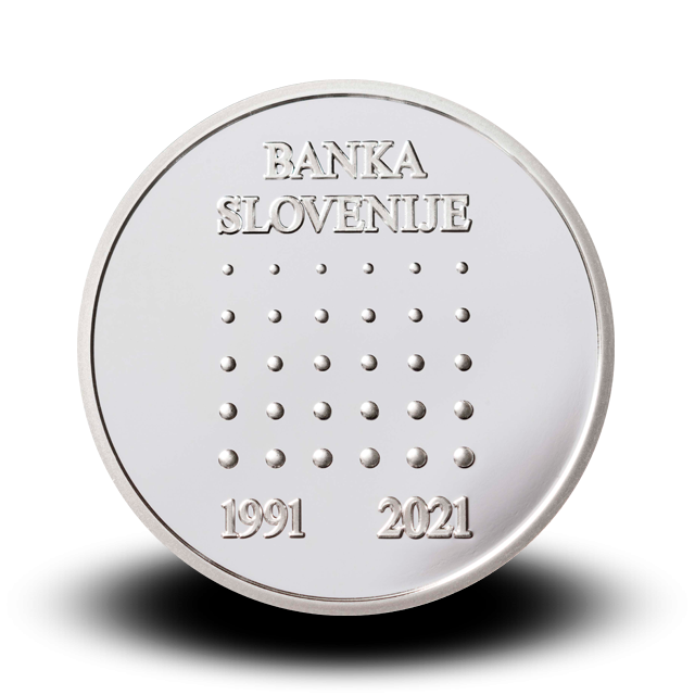 15 g srebrna medalja, 30. obletnica ustanovitve Banke Sovenije 2021 Prikaži uvećano