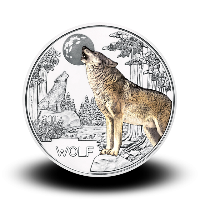 16 g (Cu/Ni), Volk - 3 € zbirateljski kovanec (2017), serija Živali v barvah / RAZPRODANO