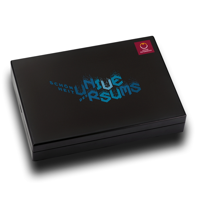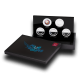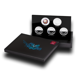 Zbirateljska šatulja v črni barvi dodatno poudari obliko in barvo kovancev, njihove certifikate pa varno shranite v pokrov. Notranji vložek se lahko dvigne in fiksira, da so srebrniki vidni z obeh strani.
