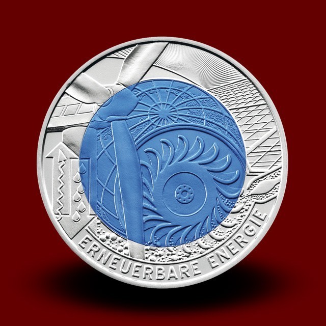 Bimetalni kovanec za leto 2010 predstavlja obnovljivo energijo, kot ključno v današnjem svetu. Na prvi strani je predstavljen življenjski krog drevesa, na drugi strani kovanca pa so upodobljeni različni načini izkoriščanja obnovljivih virov energije:voda poganja turbino, veter vetrnico, žarke sonca lovijo sončni kolektorji, geotermalni viri toplote v zemji pa ogrevajo vodo.