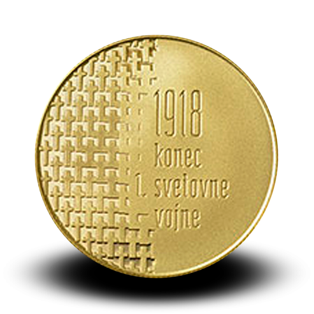 Križ na kovancu simbolizira nenadomestljiva življenja, postopno zgoščevanje križev do neprepoznavnosti pa simbolizira nepredstavljivo in še danes neznano število žrtev. Mreža križev simbolizira vojaške in tudi civilne žrtve. Vertikalna prekinitev niza križev vizualno podpira sporočilo "1918 – konec 1. svetovne vojne".