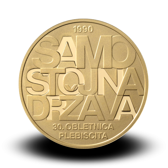 Republika Slovenije ob 30. obletnici plebiscita o samostojnosti in neodvisnosti Republike Slovenije izdaja zbirateljske kovance. Izhodišče likovne rešitve kovanca je datum izvedbe plebiscita na sprednji strani kovanca, tj. 23. 12. 1990. Datum je zapisan s prekrivanjem različnih številk, ki se berejo od leve proti desni. Številke posameznega dela datuma (23, 12, 1990) so zapisane na različnih ravneh reliefa za lažjo berljivost. Zadnja strani kovanca z napisom »SAMOSTOJNA DRŽAVA« ponazarja izid plebiscita, pri čemer je tako kot za številke na sprednji strani kovanca tudi za črke uporabljen reliefni pristop.