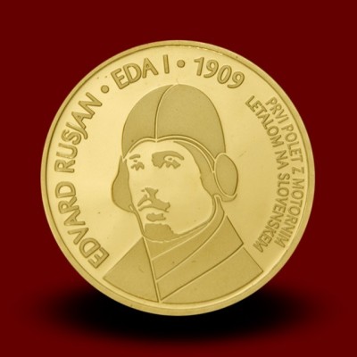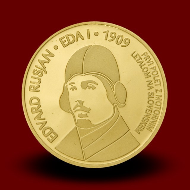 Ob stoletnici prvega poleta z motornim letalom na Slovenskem Republika Slovenija izdaja zbirateljske kovance. Na kovancih je na sprednji strani prikazan del vrtečega se letalskega propelerja, na hrbtni strani pa je upodobljen Edvard Rusjan z usnjeno čelado, kakršno so nosili prvi letalci.