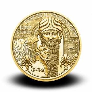 Prvi zlatnik v seriji Čar zlata, Mezopotamija krasi portret legendarnega vladarja Nebukadnezarja II. V Danielovi knjigi v stari zavezi je zapisano, da je vladar z rogato krono ukazal izdelati zlato podobo, visoko trideset metrov. Postavil jo je v dolino Dura v babilonski pokrajini. Kip je predstavljal Babilon, njegovo veličastnost in moč ter bil predmet čaščenja.
