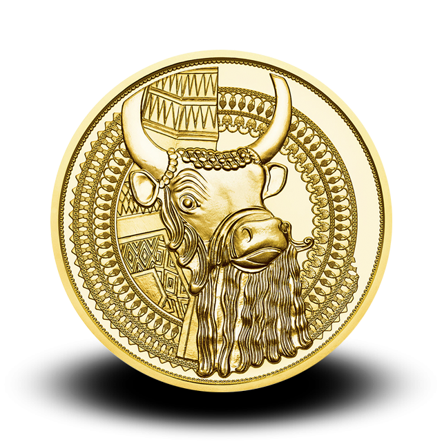 Na drugi strani kovanca je upodobljena glava bika na zlati liri, eno najstarejših strunskih glasbil na svetu. Starost inštrumenta naj bi bila približno 4500 let, so odkrili leta 1929 na kraljevem pokopališču v mestu Ur, ki se nahaja v današnjem Iraku. Bikova glava na liri je iz čistega zlata.