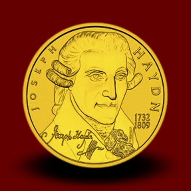 Na eni strani kovanca je portret Josepha Haydna, njegov podpis in letnica življenja. Na drugi strani pa je upodobljen grad Esterhazy v Eisenstadtu, kjer je Haydn živel in delal mnogo let. Eisenstadt je danes prizorišče letnega Haydnovega festivala.