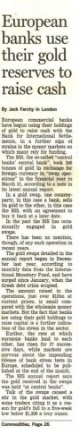 Objavljamo članek z naslovom European banks use their gold reserves to raise cash, katerega avtor je Jack Farchy iz Londona, objavljenega v današnjem dnevniku Financial Times.