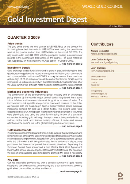 Svetovni zlati svet – World Gold Council – iz Londona nam je v sodelovanju z GFMS posredoval najnovejše podatke o gibanju cene zlata – od svetovnih zalog, naložb do vpliv političnih in drugih finančnih dejavnikov.