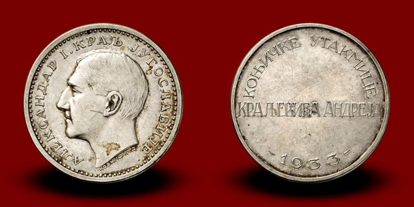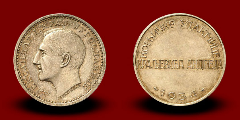Srebrni medalji izdelani na rondelah (kovnih ploščicah) obtočnega kovanca za 50 dinarjev. Medalje so izdajali ob polo turnirjih v Zemunu. Napis na zadnji strani medalj, Konjičke utakmice kraljevića Andreja.