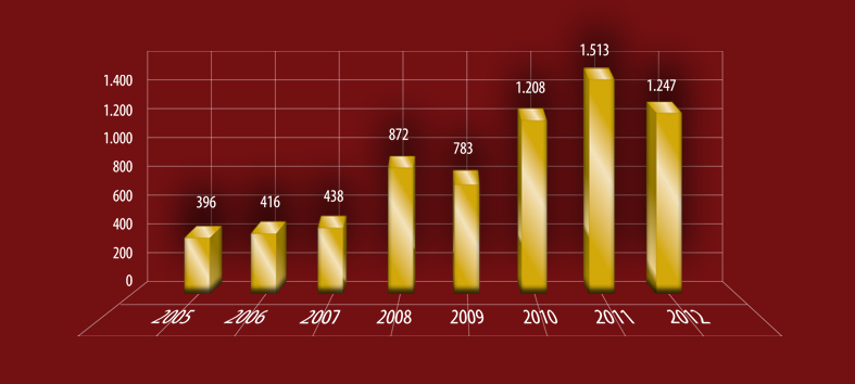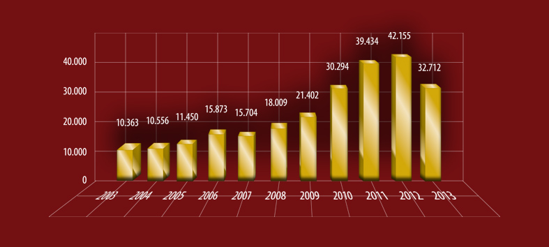 Cena 1 kg zlata v avgustu od leta 2003 – 2013