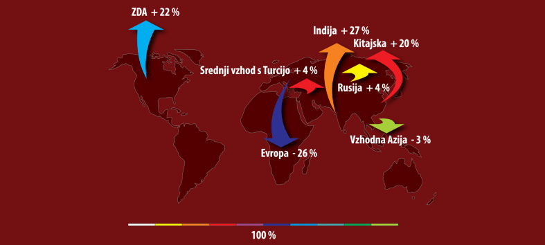 Povpraševanje po zlatu v svetu (primerjava z lanskim letom)