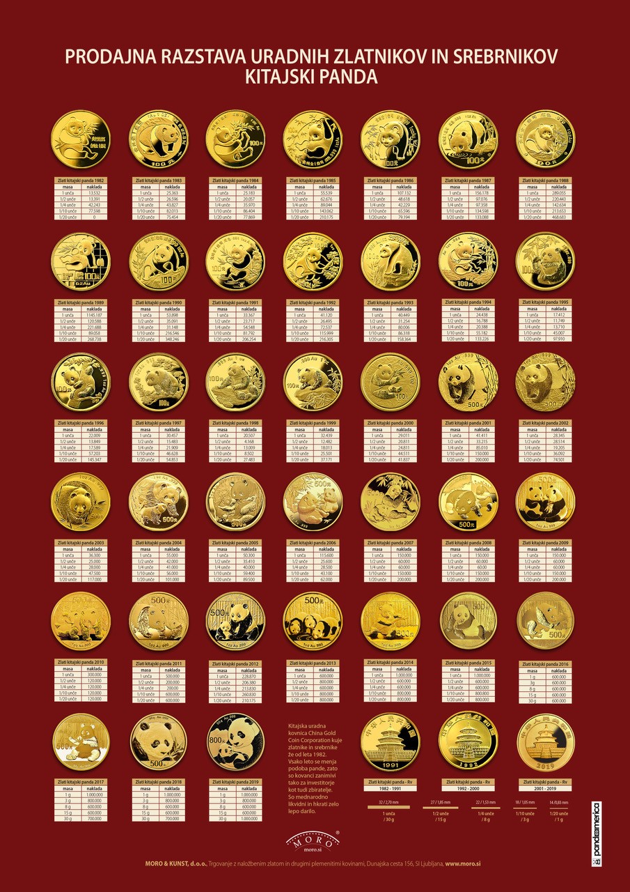 Slika je simbolična. Objavljena je bila v prostorih družbe Moro ob razstavi uradnih zlatnikov in srebrnikov Kitajski panda. Gre za dober prikaz spreminjanja podobe kovanca vse od leta 1982. Za več informacij kliknite TUKAJ