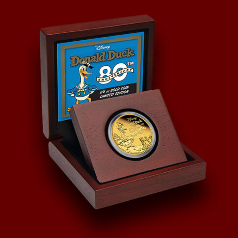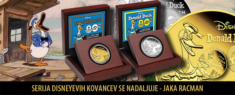 Disneyevim najbolj priljubljenim risanim junakom se bo tokrat na zlatniku in srebrniku pridružil nerodni in godrnjavi, a nadvse simpatični Jaka Racman. Po Mikiju Miški kovnica New Zealand Mint dopolnjuje serijo izjemno priljubljenih kovancev z zelo nizko naklado.