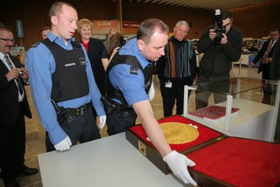Največji evropski zlati naložbeni kovanec si je na mednarodnem sejmu Collecta v Ljubljani v dveh dneh po oceni organizatorjev ogledalo skoraj 10.000 obiskovalcev. Kovanec je pritegnil tudi številne medije, od agencij STA, Reuters, Bobo do medijev kot so TV in RA Slovenija, POP TV, INFO TV, Mladina, blog Had, Delo, Slovenske novice, Nedelo, Večer, Dnevnik, Žurnal 24 in drugi.