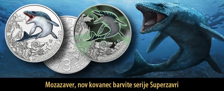 Dunajska kovnica Austrian Mint nadaljuje serijo Superzavri z Mozazavrom, največjim morskim dinozavrom, kuščarjem, iz obdobja pozne krede. Mozazaver je dosegal kar 17 metrov. Namesto nog je imel plavuti, sprednje večje od zadnjih. Tako imenovano kraljevsko morsko bitje je imelo luske v obliki diamanta, prožno lobanjo in dvojno kačjo čeljust.