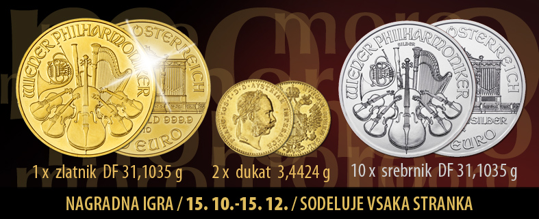*Vrednost nagrade je odvisna od trenutne borzne cene plemenite kovine na svetovni borzi.