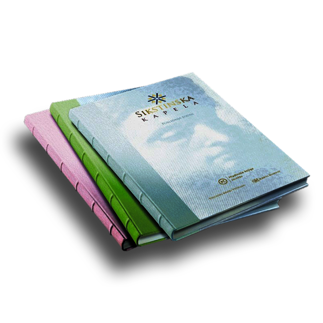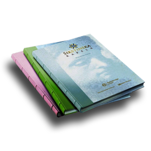 Knjižna izdaja Sikstinska kapela je najbolj popoln prikaz slikarskih mojstrovin v treh veličastnih knjigah: Poslednja sodba, Strop in Freske iz 15. stoletja. Vsaka od treh oštevilčenih unikatnih knjig vsebuje 254 barvnih strani. Barve so tiskane z najkakovostnejšim šest barvnim sistemom tiskanja. Na slovenskem trgu je bilo na voljo 50 izvodov.