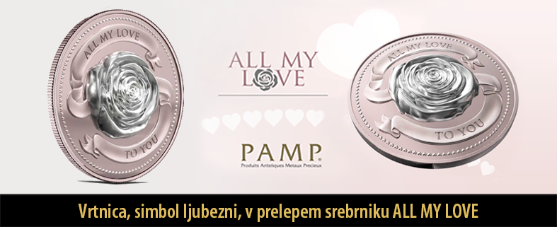 Švicarska kovnica PAMP je izdala dva posebna srebrnika, Alll My Love in Sijoča ljubezen, ki sta zagotovo prelepo darilo za najrazličnejše priložnosti, tudi ob valentinovem in dnevu žena. Srebrnika sta vsekakor dragocen spomin in z njima lahko podarite vso vašo naklonjenost in ljubezen.