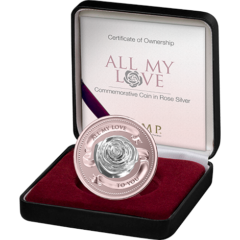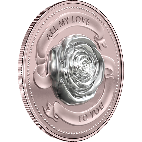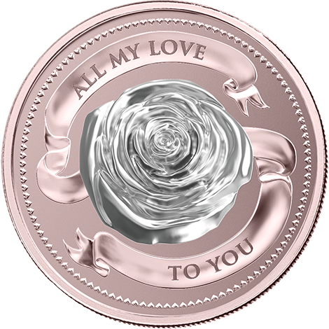 Vrtnica je simbol ljubezni. Srebrnik izdelan v visokem reliefu je čudovito darilo vašim najbližjim. V osrednjem delu kovanca se nahaja bogata vrtnica, ki kot dragocen diamant predstavlja simbol ljubezni. Preostali del kovanca je obarvan v nežno rožnatem odtenku z elegantnim napisom All My Love.