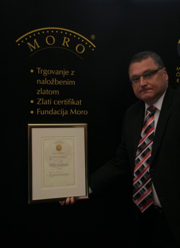 Irena Moro, direktorica družbe Moro, pravi: »S strokovnjaki različnih področij v Sloveniji smo izdelali Zlati certifikat in s tem naložbenikom ponudili možnost hrambe zlata. To zlato je zavarovano preko svetovno priznane zavarovalne hiše v Londonu na tržno vrednost shranjenega zlata, kar sicer ni praksa v Sloveniji.«