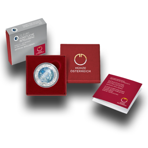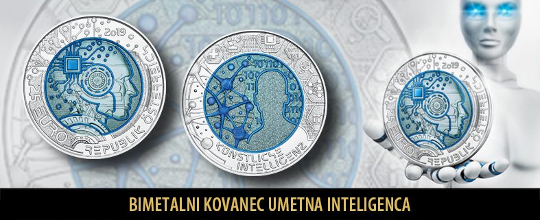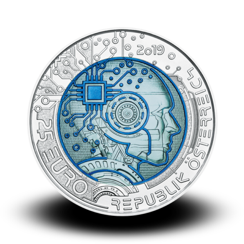 Umetna inteligenca, nov srebrnik iz serije niobij kovancev z letnico 2019, je usmerjen v prihodnost. Umetna inteligenca je na voljo praktično na vsakem koraku, računalniki nam pomagajo pri številnih vsakodnevnih opravilih, ne da bi sploh opazili. Ironično, še vedno smo boljši od robotov, ko gre za naše zaznavanje in motorične sposobnosti, a umetna inteligenca postaja vedno bolj inteligentna in ustvarjalna.