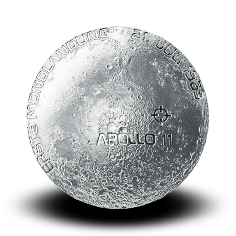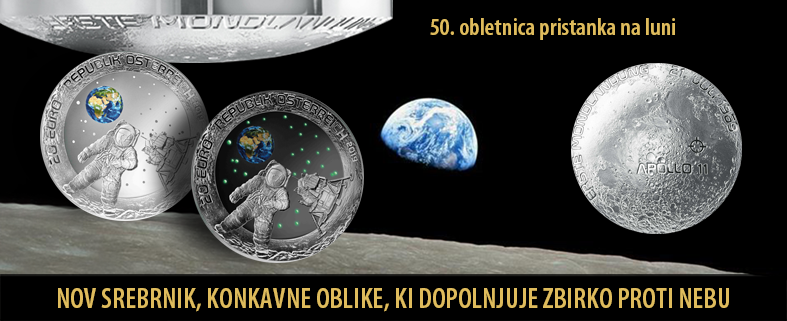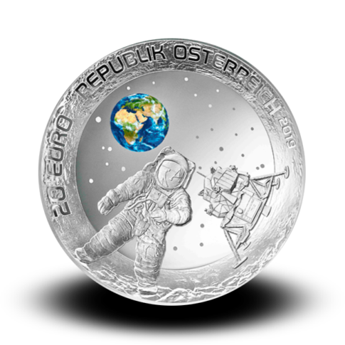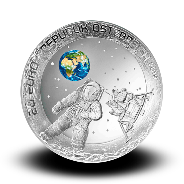 Avstrijska kovnica je ob 50. obletnici pristanka na luni izdala poseben kovanec, tokrat precej drugačen in tehnološko izredno zanimiv, gre za srebrnik konkavne oblike. Oblikovalci so želeli tridimenzionalno prikazati oddaljenost zemlje od lune na eni strani kovanca in površje lune z njenimi izrazitimi kraterji na drugi. Zemlja na kovancu je v barvah. Posebnost srebrnika so še zvezde, ki zasvetijo v temi.
