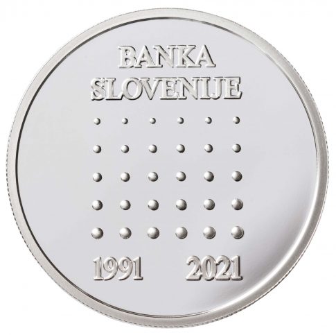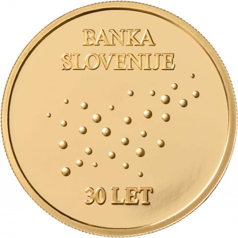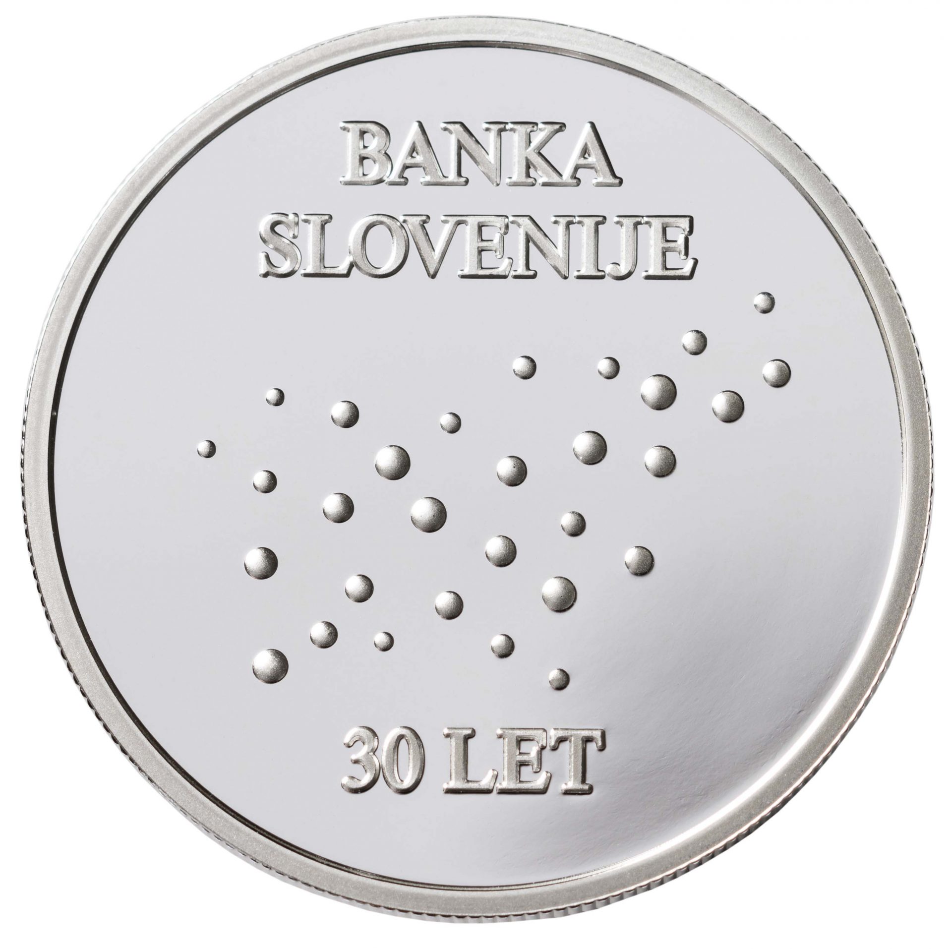 V Banki Slovenije letos praznujemo 30. obletnico ustanovitve. Ob tej priložnosti bo na voljo 500 zlatih medalj po ceni 600 EUR za kos in 1.000 srebrnih medalj po ceni 60 EUR za kos. Avtor likovne rešitve je Tevž Zrinski. Kupite jih lahko na blagajni Banke Slovenije in preko prodajnih agentov družbe Moro & Kunst.