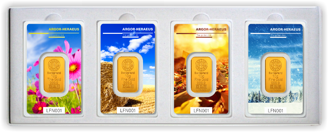 Argor-Heraeus ponosno predstavlja nov izgled zlatih palic pod sloganom V sožitju z naravo. Poleg že poznanih palic pakiranih v elegantnih črno zlatih tonih, so oblikovali štiri dodatne podobe, in sicer za vsak letni čas drugo. Slednje so omejene tako časovno, saj so v prodaji le v aktualnem letnem času, kot tudi količinsko, 9.999 palic vsake mase.