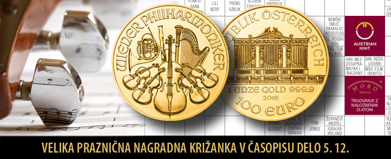Dunajska kovnica Austrian Mint in družba Moro, uradni zastopnik kovnice v Sloveniji, objavljata v časopisu Delo v soboto, 5. decembra PRAZNIČNO NAGRADNO KRIŽANKO.