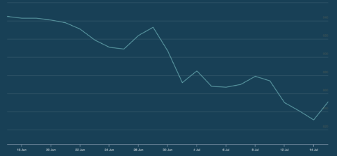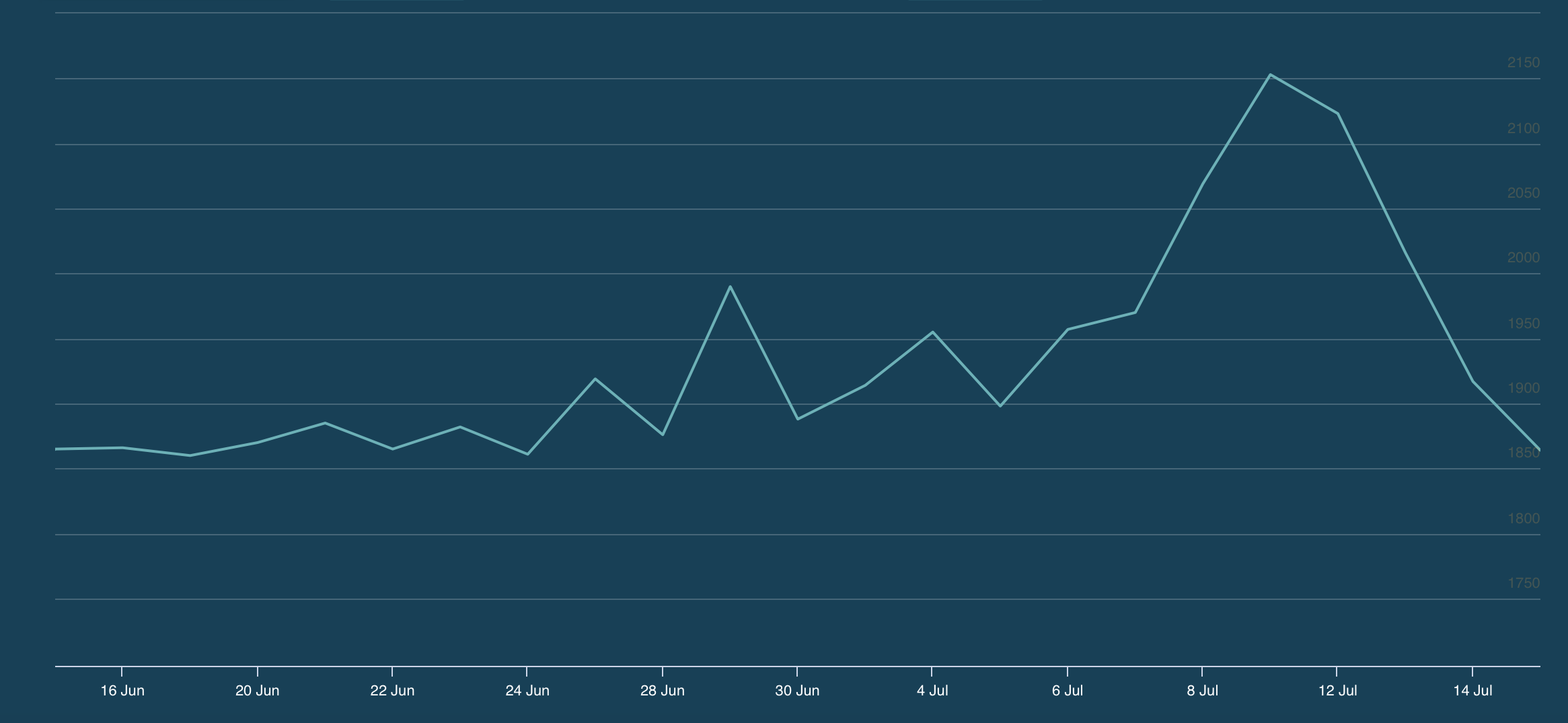 Gibanje cene paladija v USD/oz v zadnjem mesecu (LBMA popoldanski fiksing)