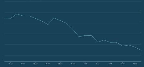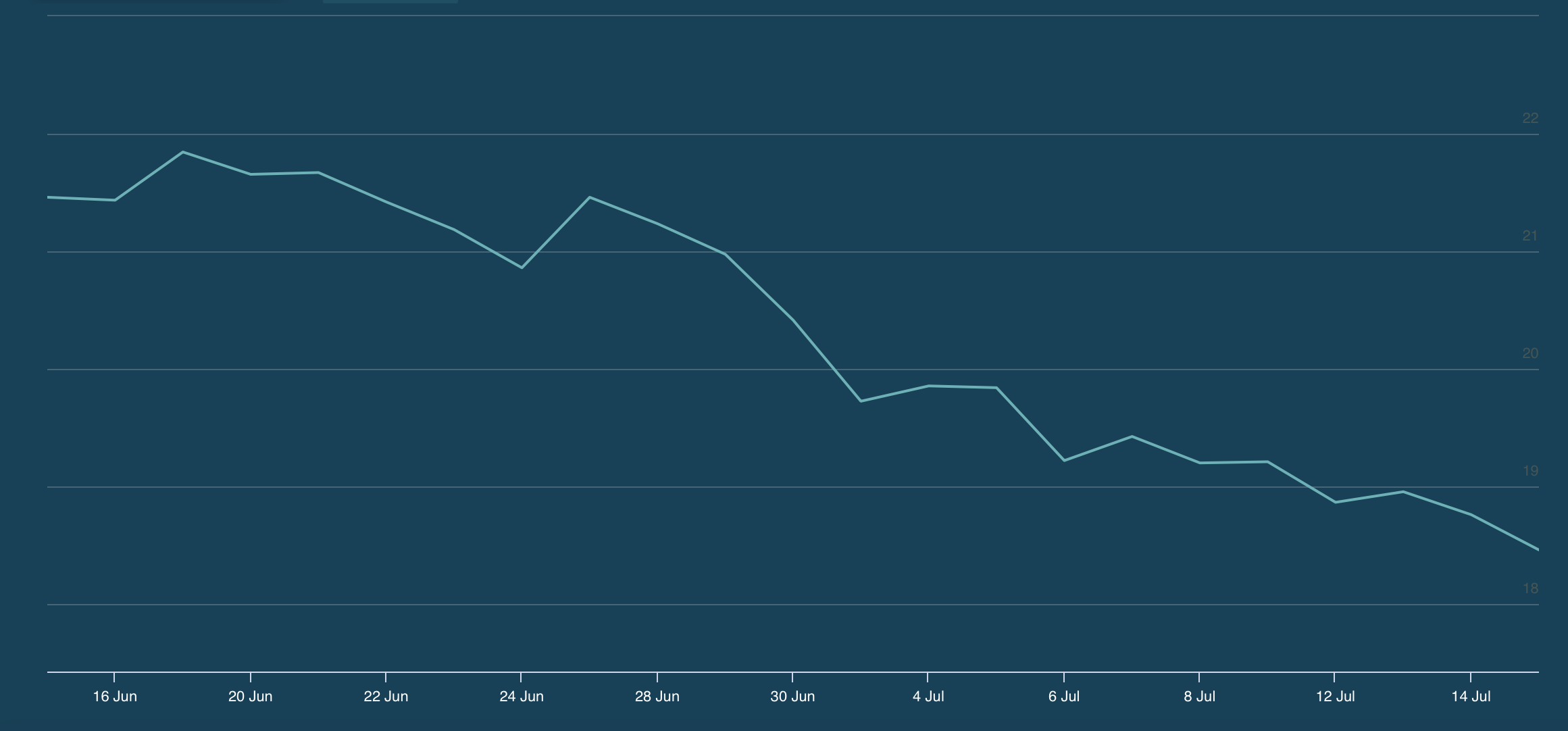 Gibanje cene srebra v USD/oz v zadnjem mesecu (LBMA popoldanski fiksing)