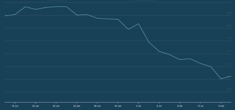 Gibanje cene platine v USD/oz v zadnjem mesecu (LBMA popoldanski fiksing)